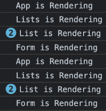 굳이 렌더링 될 필요 없는 Lists, List 컴포넌트는 더이상 렌더링 되지 않는 것을 확인