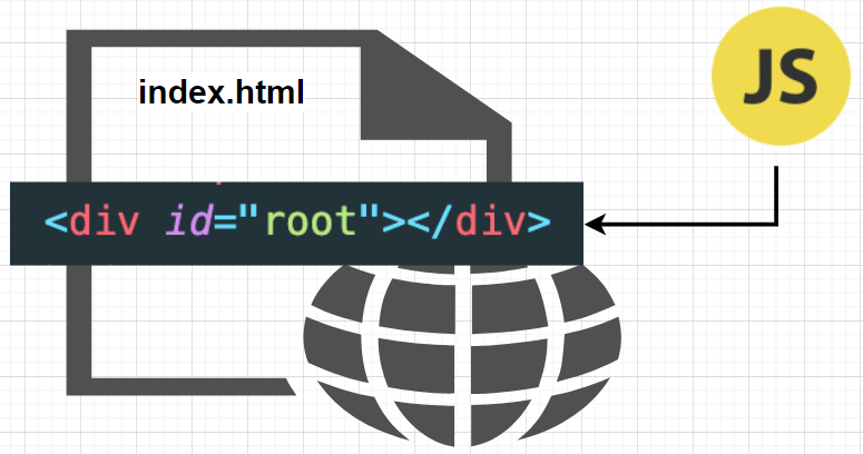 root id 가진 div요소 잡아서 그 안에 화면 꾸미는 원리