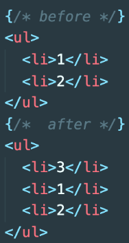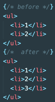 3번을 1,2번 뒤에 추가 시 리액트에서는 3번만 추가하면 된다고 인식