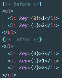 3번을 1,2번 앞에 추가 시 리액트가 모든 요소가 새롭게 된거라 인식