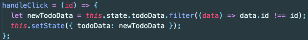 filter로 클릭한 요소의 id데이터와 데이터 객체 중 id와 비교해 같은 객체 제외한 나머지 객체들을 newTodoData에 할당