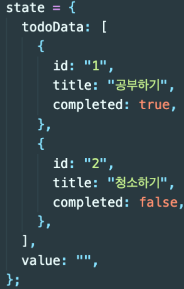 todoData라는 데이터 객체와 value라는 데이터를 보유한 state
