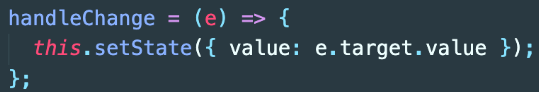 함수 인자로 이벤트(e)를 가져와 e.target.value(입력한 값)을 state에 정의한 value에 할당