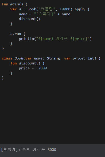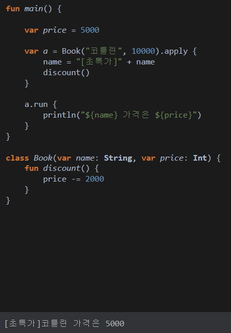 이렇게 run이라는 스코프 함수를 통해 참조연산자를 이용하여 접근 안해도 출력이 잘된다.