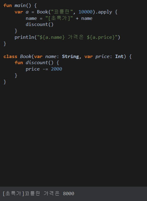 apply를 활용하여 람다함수를 만들고, apply scope 안에 직접 인스턴스 속성과 함수를 참조연산자 없이 사용 가능하다.