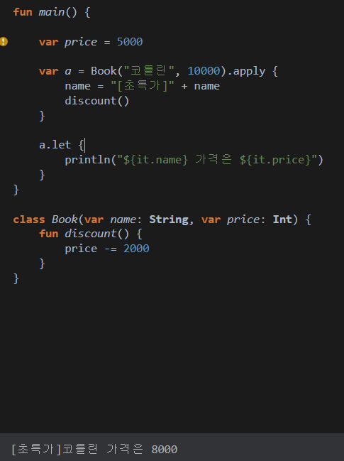 이럴 때 run을 let으로 변경 후 a의 속성을 가리키도록 it으로 참조연산자를 통해 접근한다면 정상적으로 작동한다.