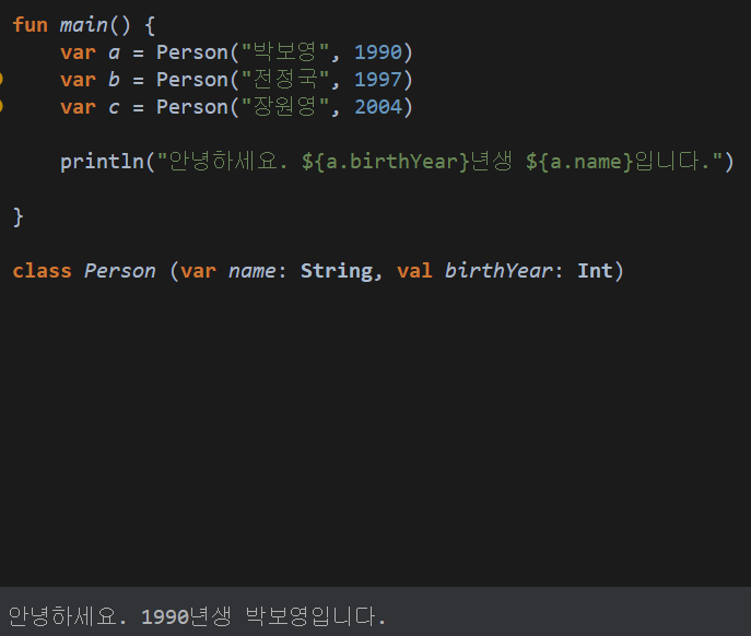 인스턴스로 선언한 객체 a를 사용하기 위해서는 a.birthYear과 같이 참조변수로 접근
