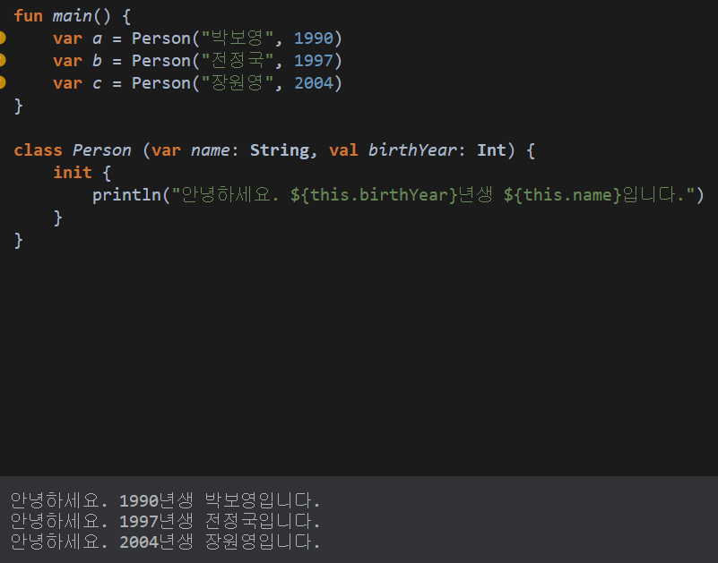 init을 통해 인스턴스가 생성 시 호출되어 출력문이 나오는 것이다.