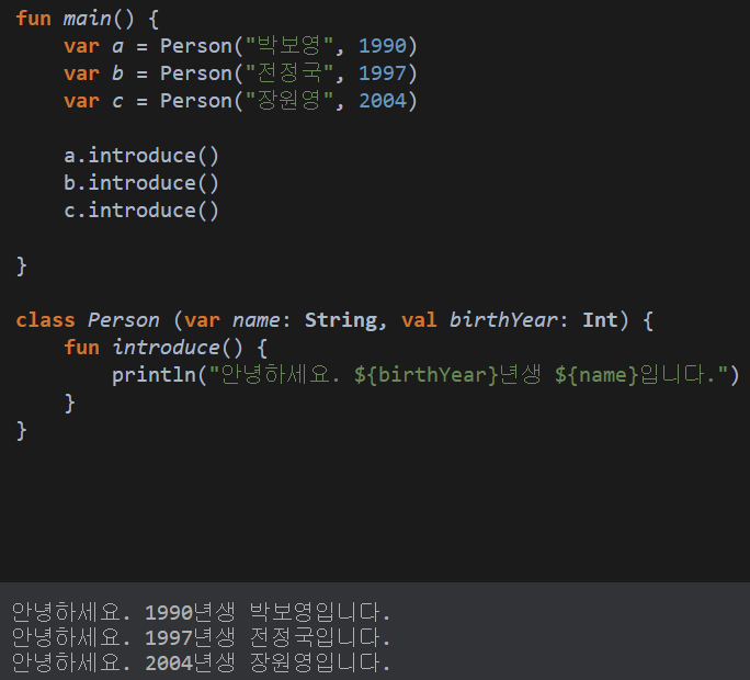 이러한 방식으로 진행하면 함수 내 println 정의로 다른 모든 인스턴스 객체들이 참조로 접근하게 되어 사용하게 된다.