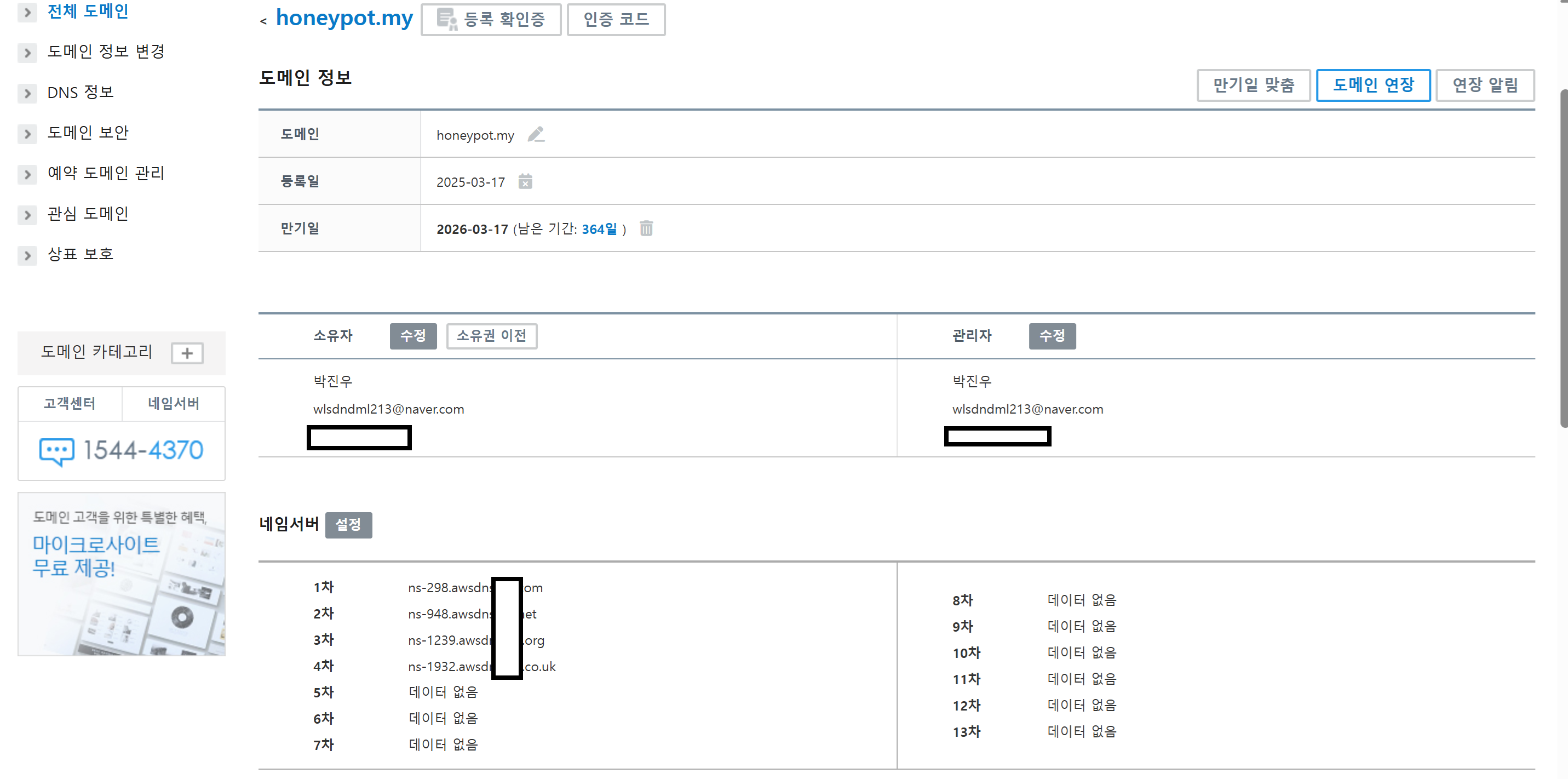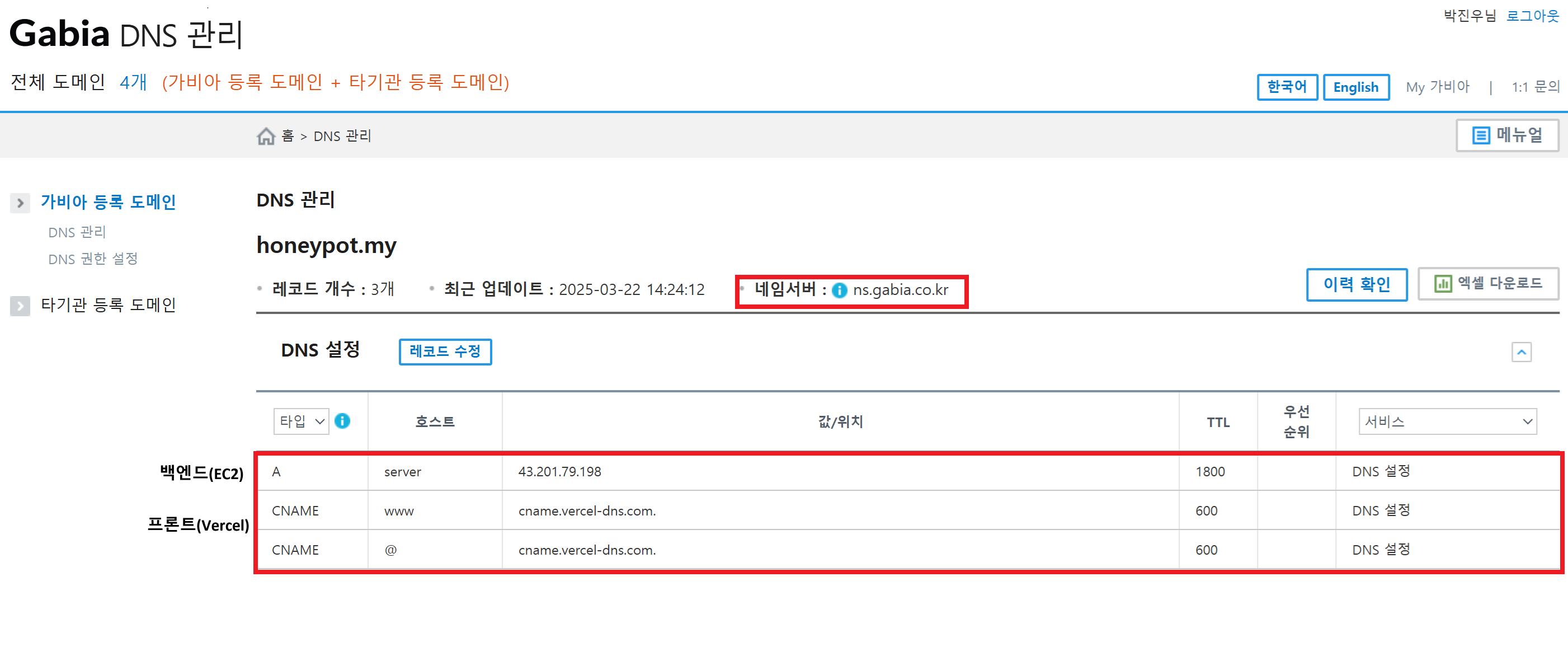 (네임서버를 aws에 있던 값으로 변경)