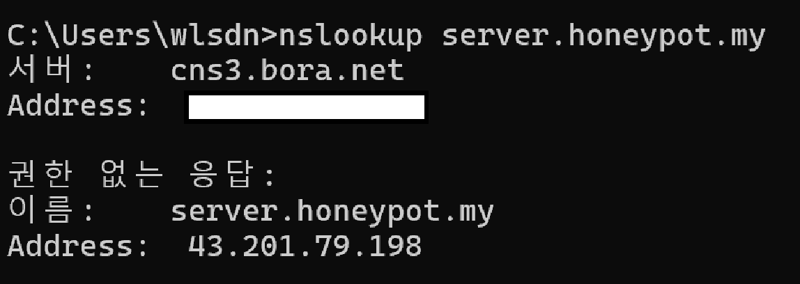 honeypot.my를 주소창에 입력함- DNS쿼리를 통해