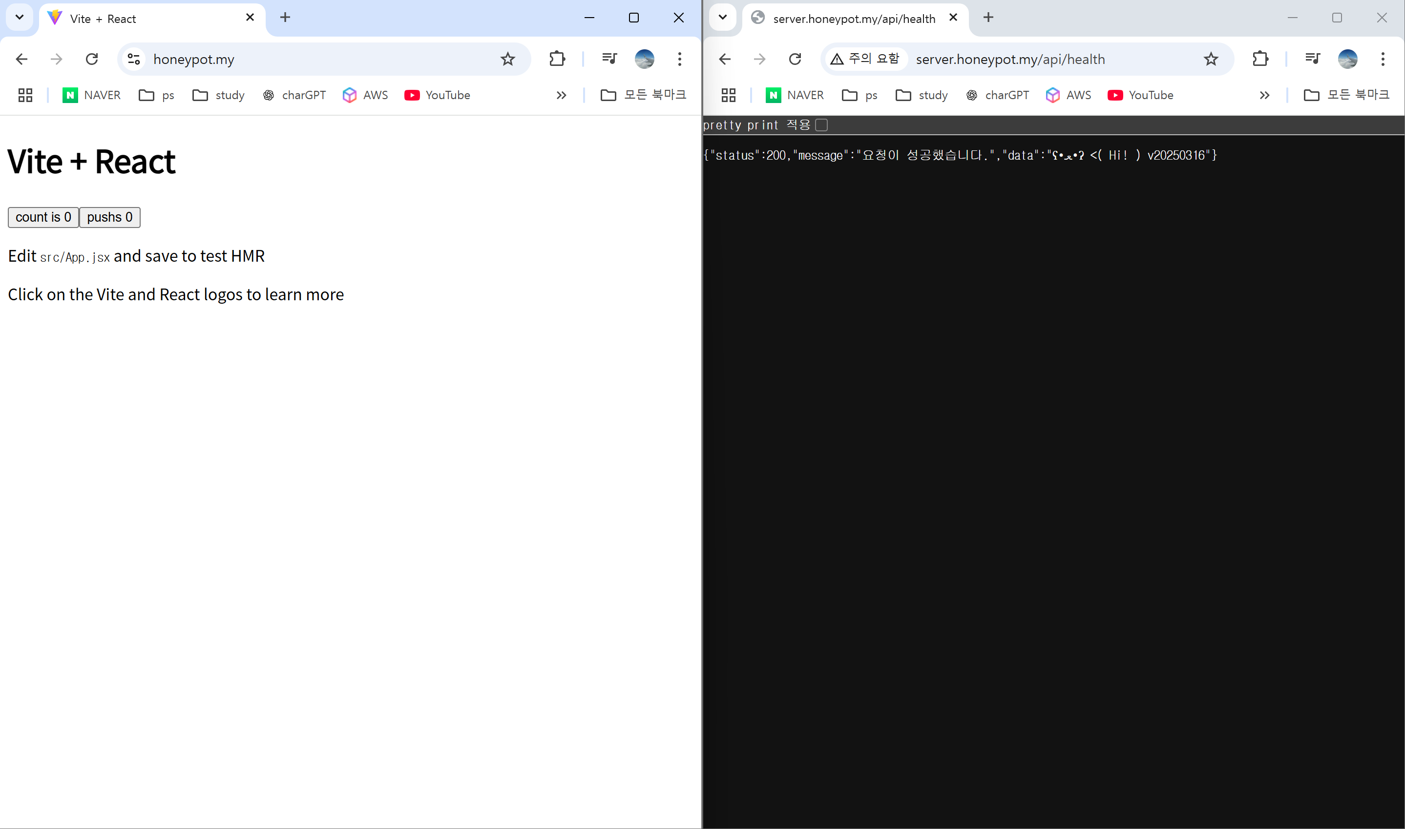 성공적으로 반영이 되었고, 10분정도 기다렸다 honeypot.my으로 접속해 보자.