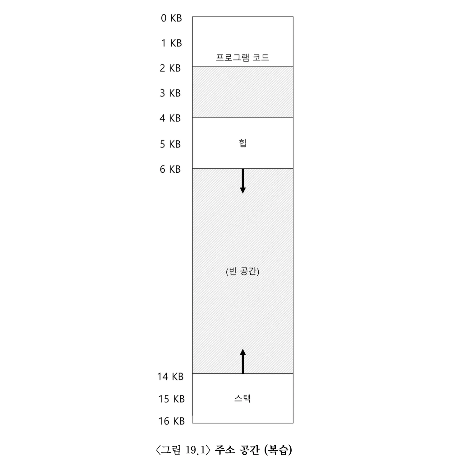 그림 19.1의 주소공간을 사용하여 주소 변환을 해보자. 가상 주소 100번지를 참조한다고 가정하자.