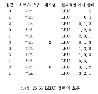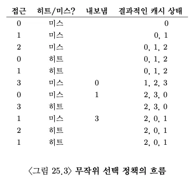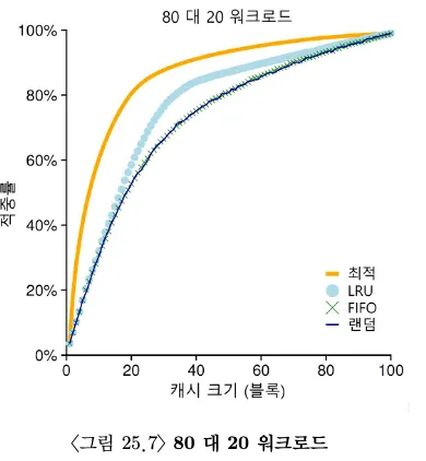 FIFO, 무작위 정책보다 LRU가 더 좋은 성능을 보인다.