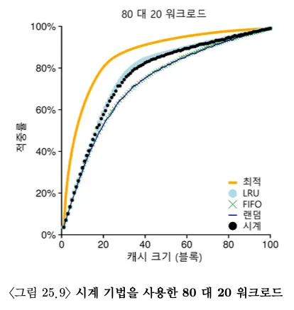 연산량이라는 관점에서 볼 때, LRU를 근사하는 식으로 만들면, 구현이 훨씬 쉬워진다. 실제로 현대의 많은 시스템도 이런 방식을 택하고 있다.