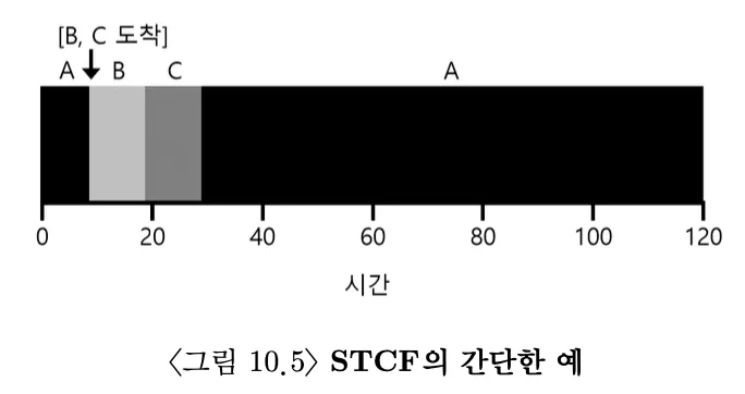 작업의 길이를 미리 알고 있고, 작업이 오직 CPU만 사용하며, 평가 기준이 반환 시간 하나라면 STCF는 매우 훌륭한 스케줄링 알고리즘이다.