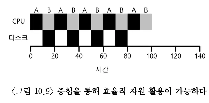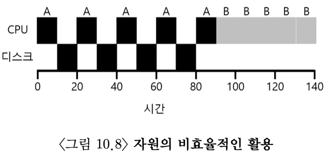 현재 입출력이 수행 중이라면 완료까지 CPU를 사용하지 않기 때문에 그 시간 동안에 다른 작업을 스케줄 해야 한다.