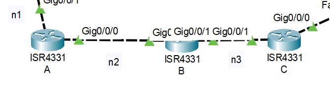 위 그림과 같이 구성하였을 때, n1이 다운되면, 라우터 A는 자신의 n1인터페이스가 다운됨을 감지하고, 자신의 라우팅 테이블에 해당 n1의 경로가 없다고 표시한다.