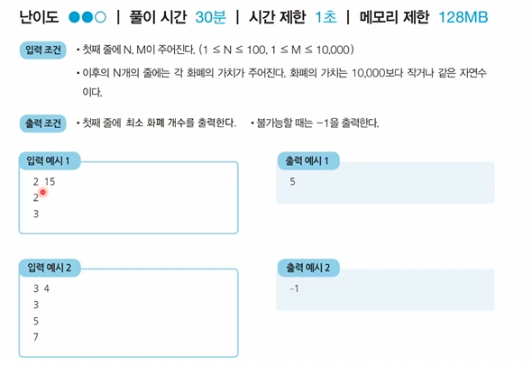 if d[j-array[i]] != 10001: # (i-k)원을 만드는 방법이 존재하는 경우