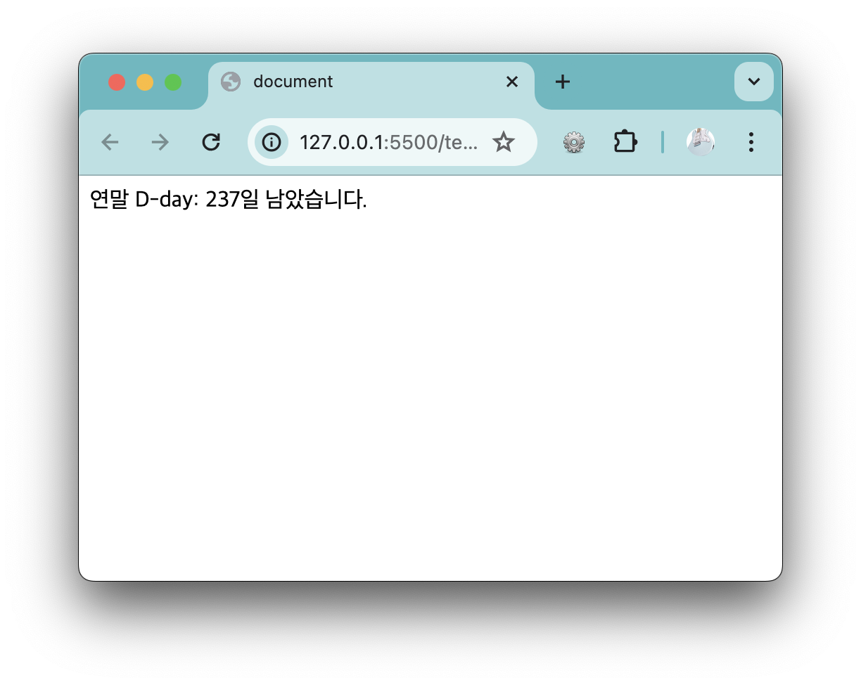 document.write("연말 D-day: " + result + "일 남았습니다.");