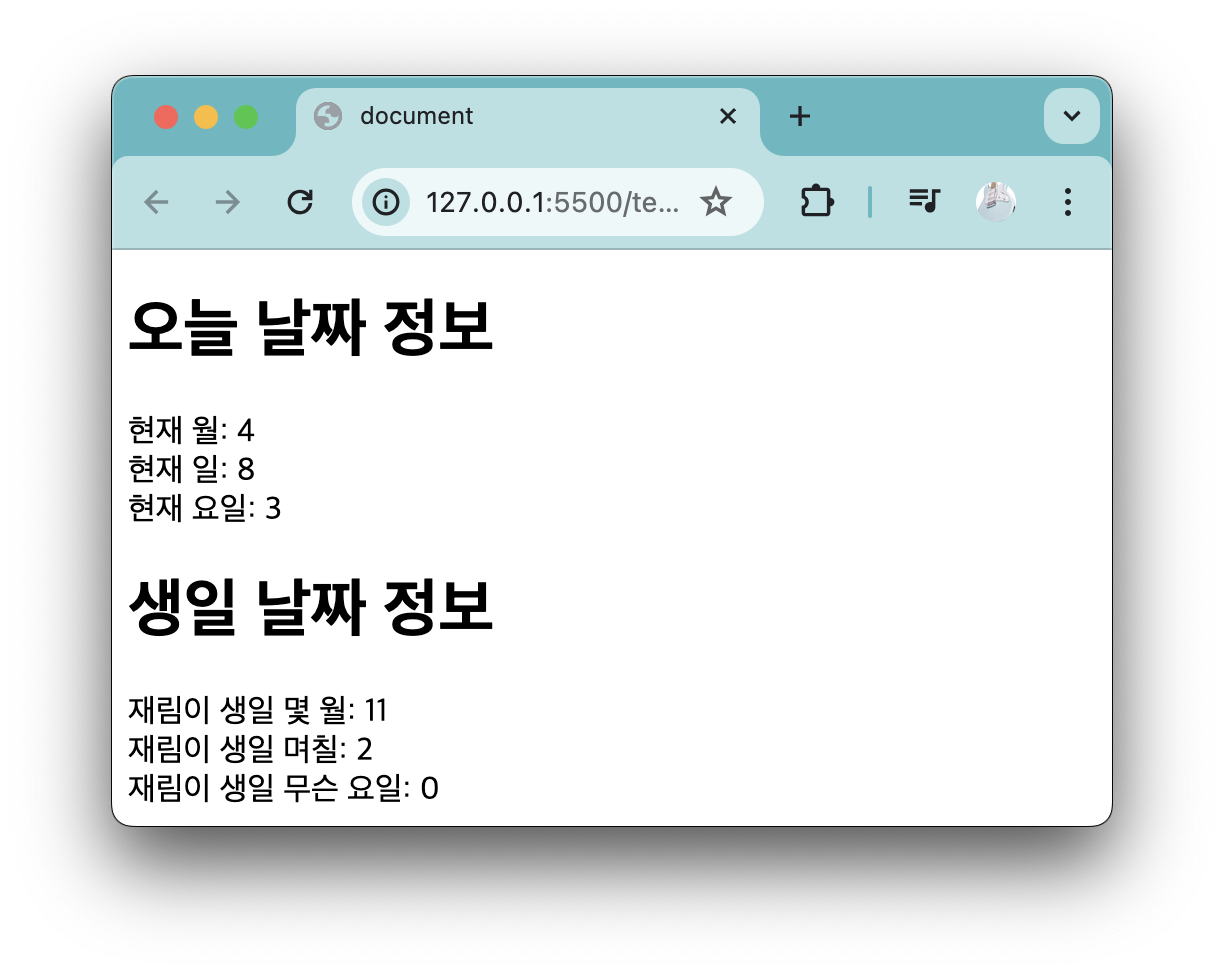document.write("재림이 생일 며칠: " + theDate, "<br>");