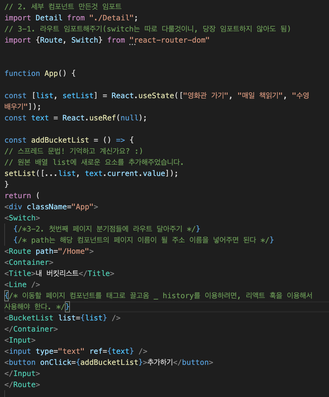 - 2nd. 페이지 분기점에 < Route path = "/주소이름" > 달아주기
