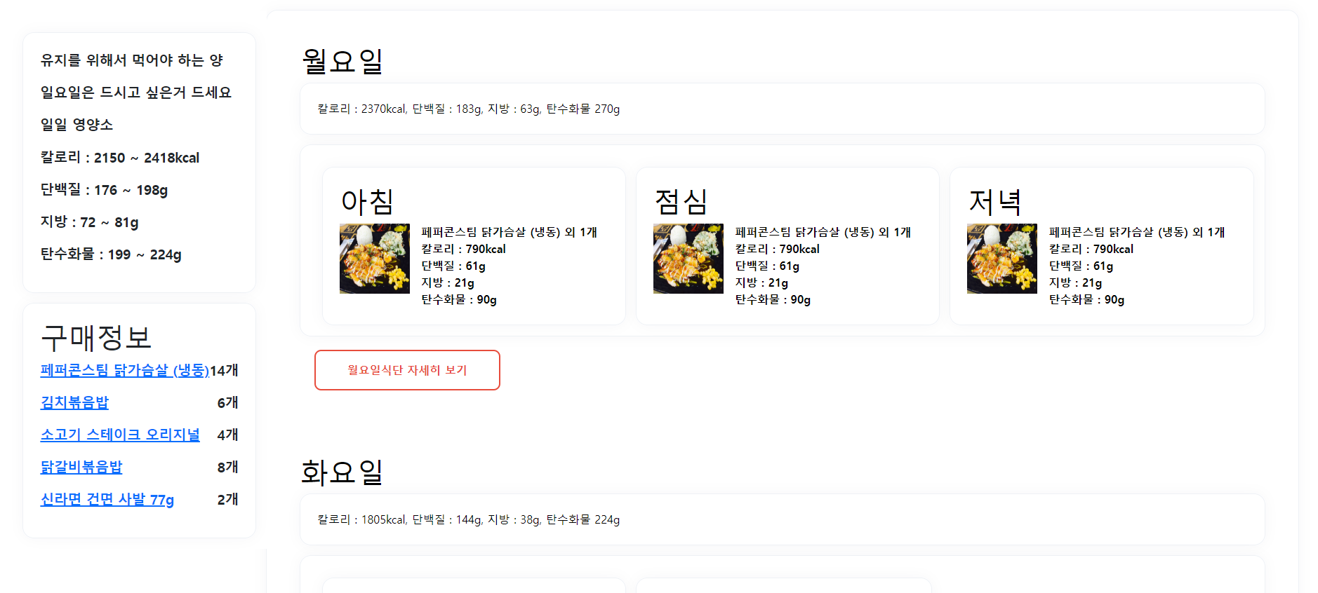 이 문제는 한가지 식단을 주에 21번 반복하면서 생긴 문제였고 내가 생각한 해결방법은 다음과 같다.