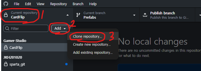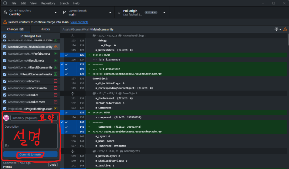 오늘 Github를 통해 팀프로젝트인 카드맞추기에서 Prefabs부분을 담당했다.