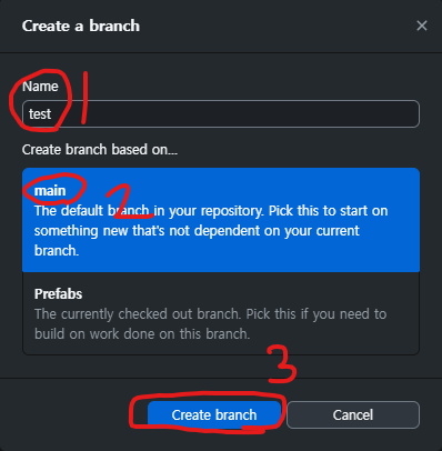 베이스로 사용할 Branch를 선택하고 생성하면 베이스 Branch와 똑같은 환경에서 작업할 수 있다.