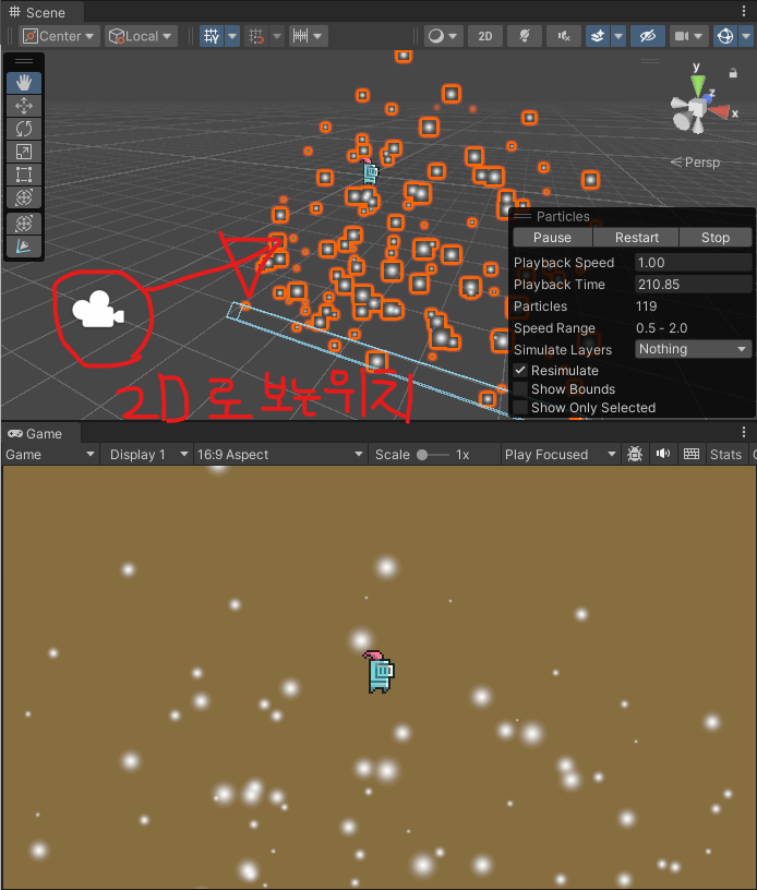 파티클 시스템은 작은 이미지 또는 메시(Particle)를 생성하고,