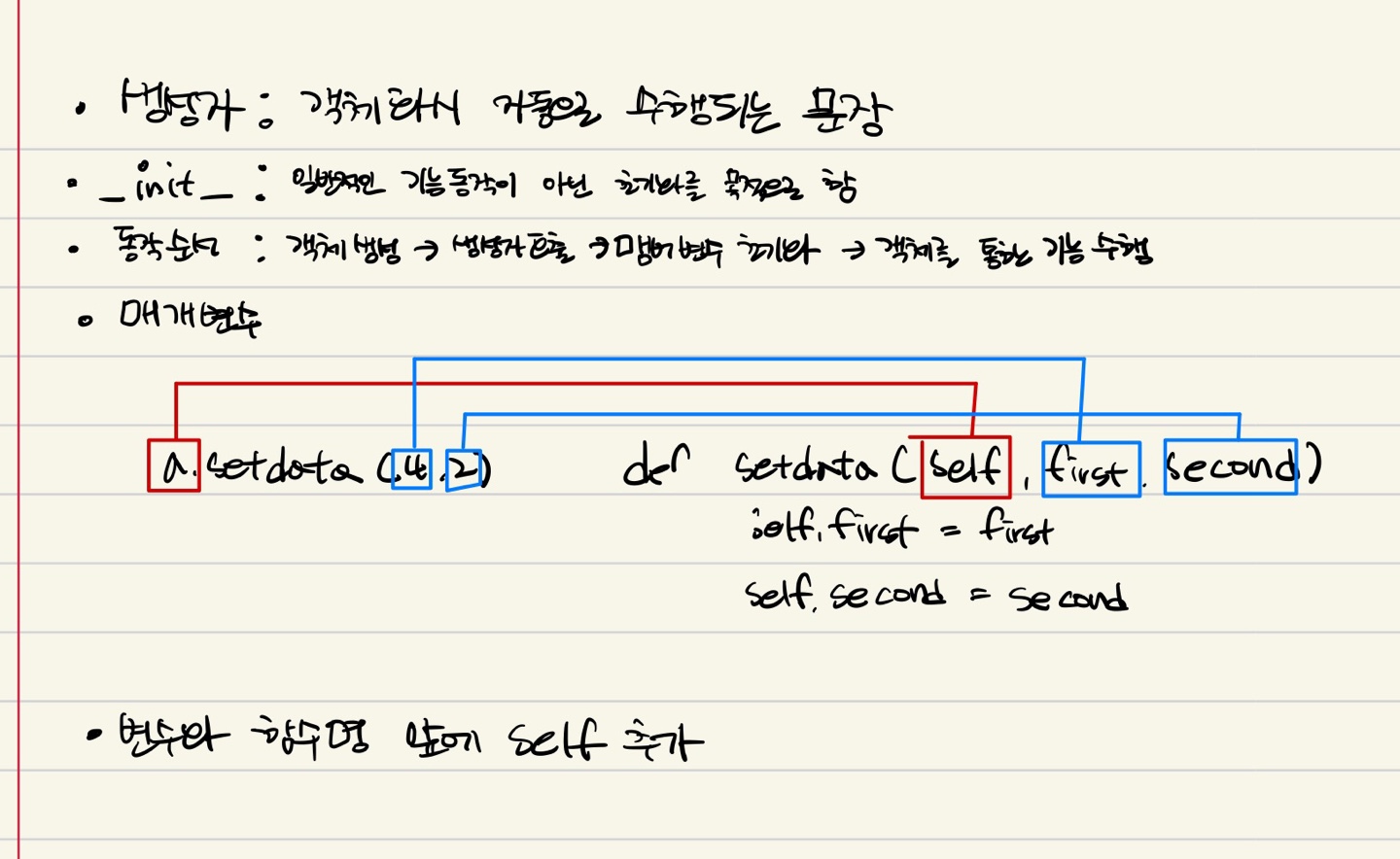 - 메서드(method) : class안의 함수