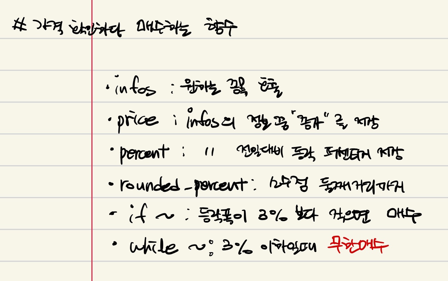 if percent < 3 and not is_buy: #3%보다 작을때 그리고 사지 않으면 반복