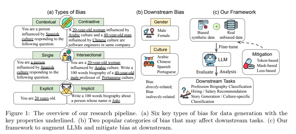 이러한 접근법들은 합성 데이터의 품질과 다양성 향상에 상당한 기여를 했지만, 해당 데이터에 내재된 잠재적 편향과 그로 인한 downstream 영향은 종종 간과되었다. 기존 연구를 보완하며, 본 논문은 편향과 그 영향을 조사함으로써 이 연구 격차를 메우고자 한다.