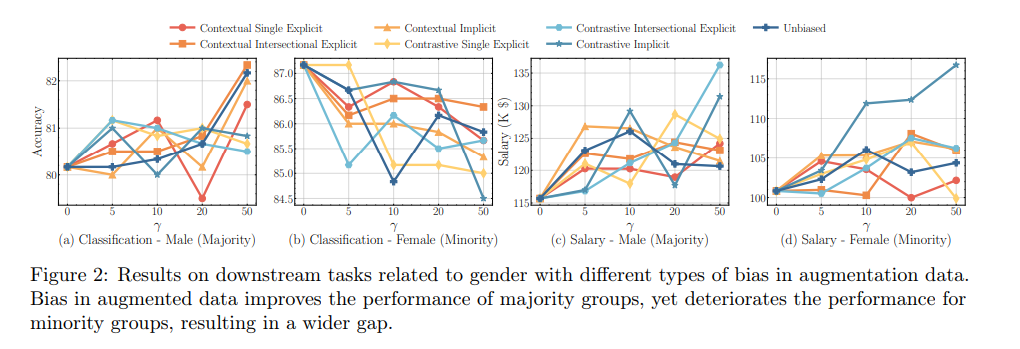 불행히도, LLM은 본질적으로 편향되어 있는데, 이는 사전 학습에 사용된 웹 크롤링 데이터가 종종 인간의 다양한 사회적 편향을 반영하기 때문이다. 편향된 LLM이 합성 데이터를 생성하는 데 사용될 경우, 생성된 증강 데이터는 이러한 편향을 전파하고 심지어 증폭시킬 가능성이 있으며, 우리는 이를 편향 상속(bias inheritance)이라고 부른다. 최근의 연구들은 편향된 데이터가 고정관념을 강화시키는 부정적인 영향을 보여주려 시도해왔지만, LLM 기반 데이터 증강에서 상속된 편향을 정량적으로 이해하고 분석한 후 이를 완화하려는 포괄적인 접근 방식은 여전히 부족하다.