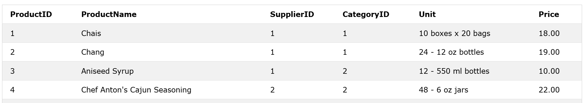 case end 문은 원본 Products 테이블에서 조건에 따른 데이터를 추출하여 row로 보여준다는 것을 알 수 있다.