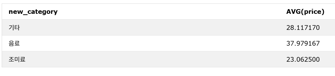피보팅은 테이블의 데이터를 row 형태로 보여줄 때 주로 사용하곤 한다. 아래 쿼리를 기반으로 한 테이블을 살펴보자.