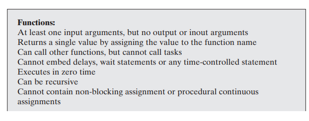 The functions should be executed in zero time delay, which means that the functions cannot include timing delay information. The functions can have any number of inputs but can return only a single output.