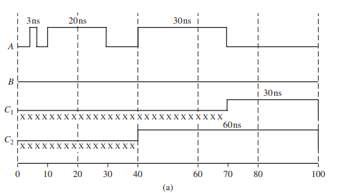 pulses are narrower than the inertial delay values, output changes will not occur and not paying attention to this fact may make a designer think that