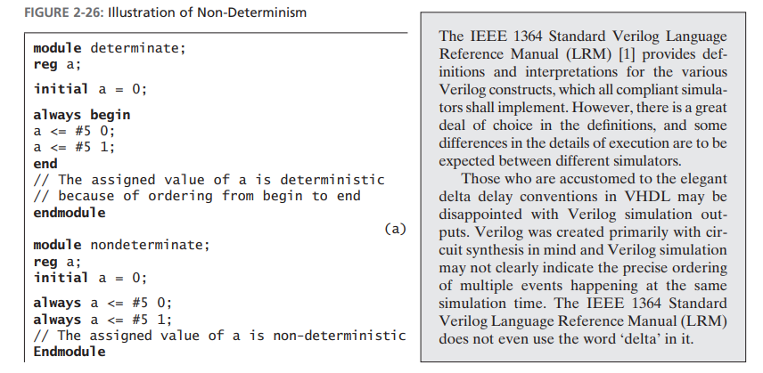Events can be processed in any order from within this region. (This freedom to choose any active event for immediate processing is an essential source of non-determinism in the Verilog HDL.)