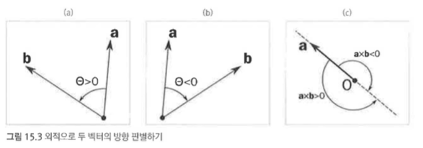 외적은 원래 4차원 공간에서 정의된 것이지만, 2차원 평면 위의 백터도 외적의 크기를 계산할 수 있다.