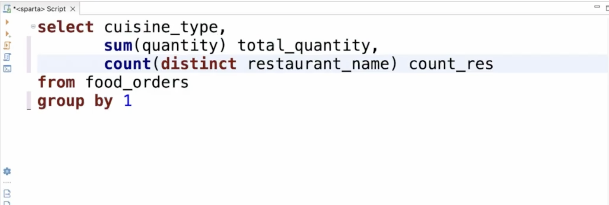 복잡하게 생각하지 말고 쿼리별 요청만 파악 후 group by로 기준 잡아서(1번 컬럼= 1, 작성한 순서 숫자로) 계산함