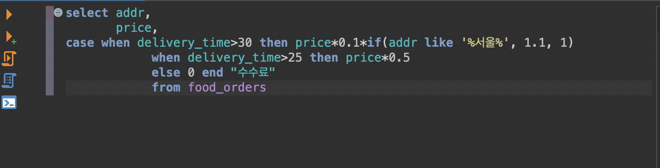 서울 수수료 부가 case when에 If문 사용 like로 '서울'만 지정