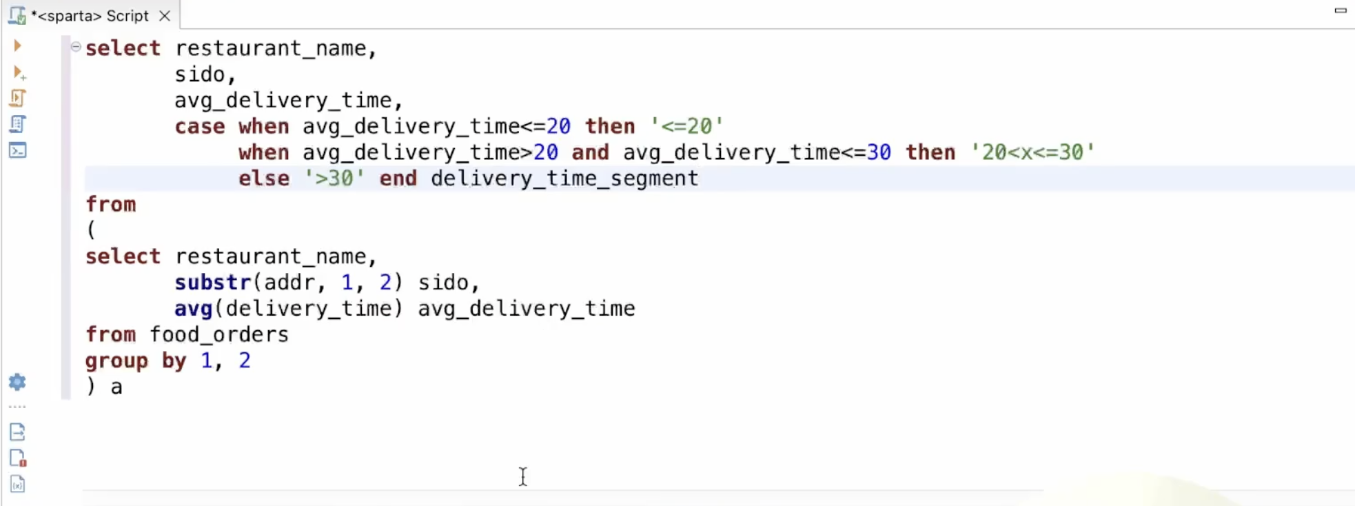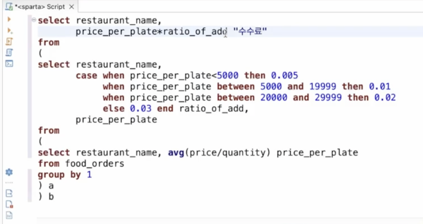 문자로 서브퀘리 네임지정하여 마무리! -- a, b