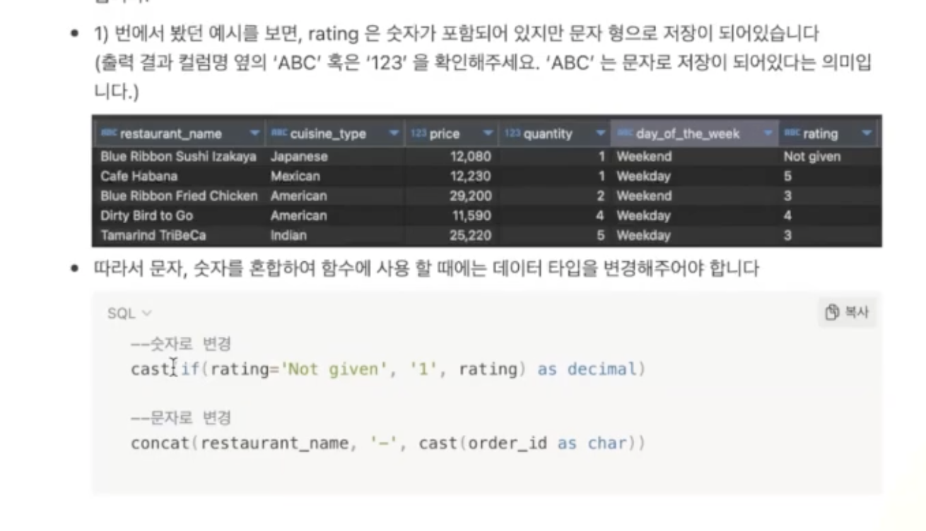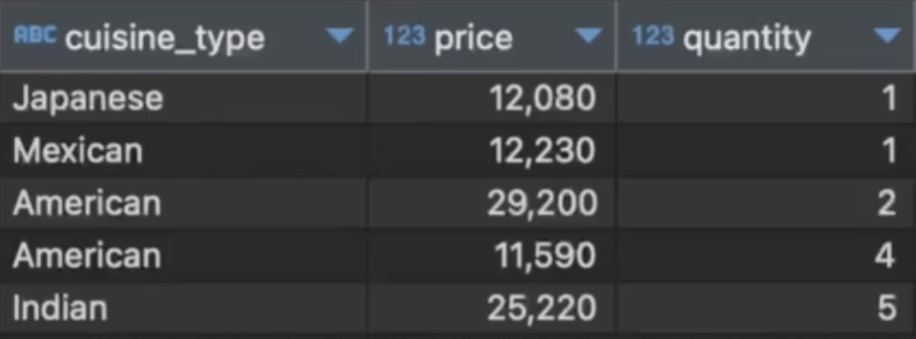 컬럼 옆에 ABC는 문자로 항목이 저장되었고 123은 숫자로 저장되어 계산이 가능하다는 의미