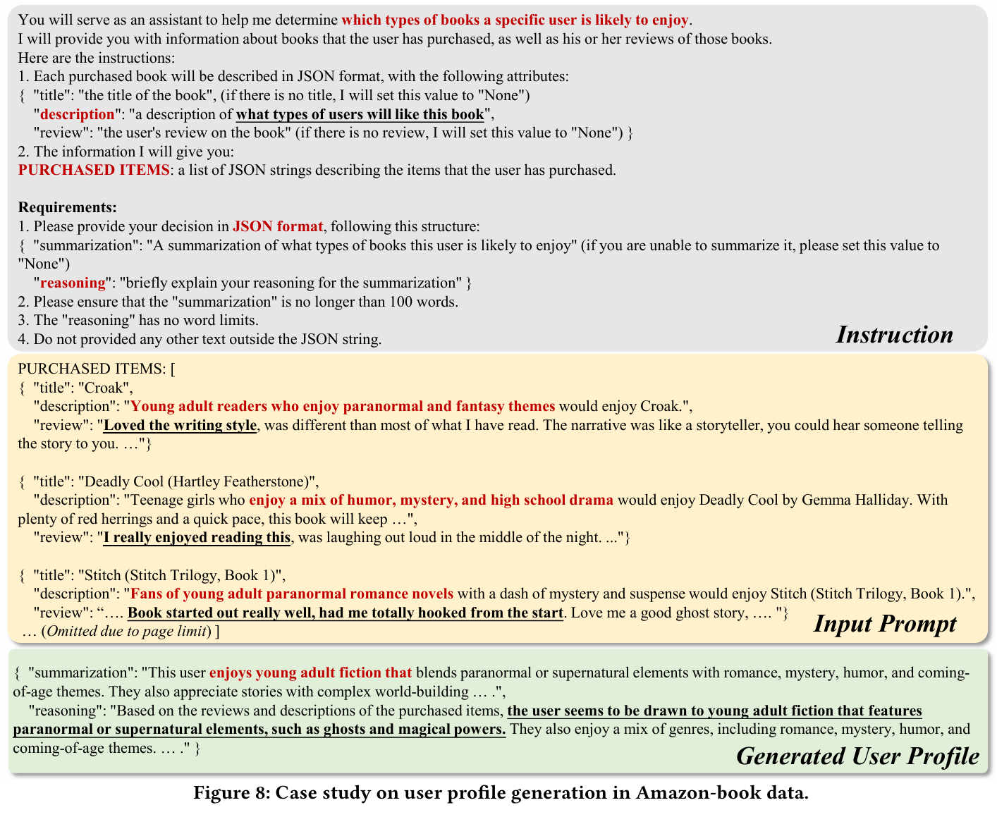 추론 기반 시스템 프롬프트 : RLMRec은 생성된 출력에서 추론 과정을 포함함으로써, 추천의 품질을 높이고 사용자 요구에 더 잘 부합하는 정보를 제공한다.