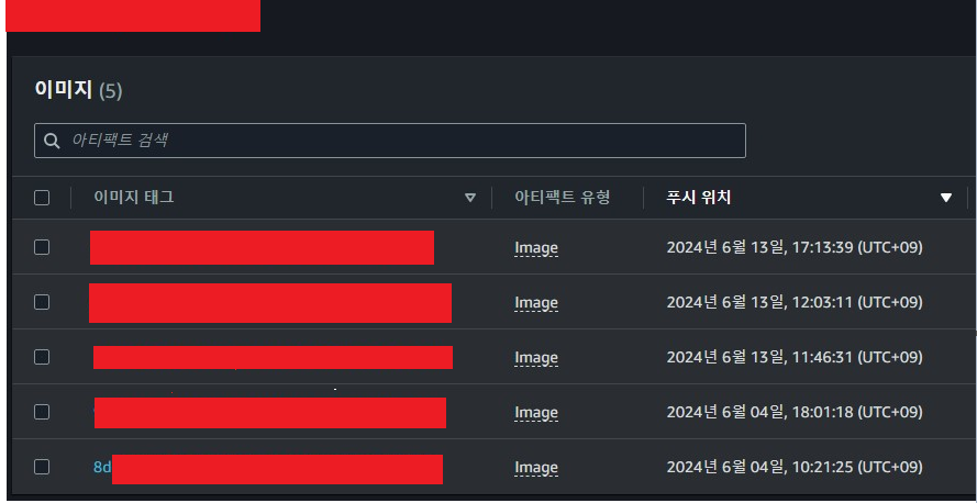 자동 배포를 할 때마다 ECR의 레포지토리에는 이미지가 점점 쌓입니다.