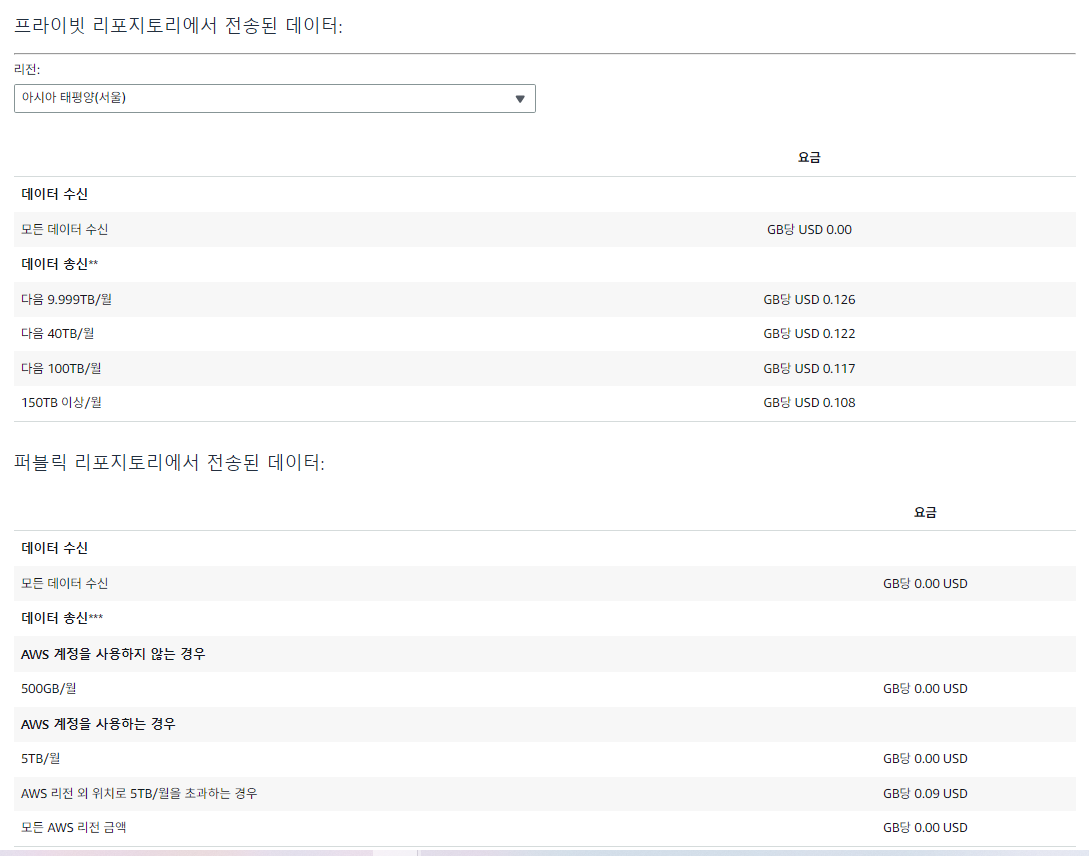 ECR의 과금 방식에는 크게 데이터 송수신 비용과 스토리지 비용이 존재합니다.