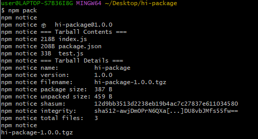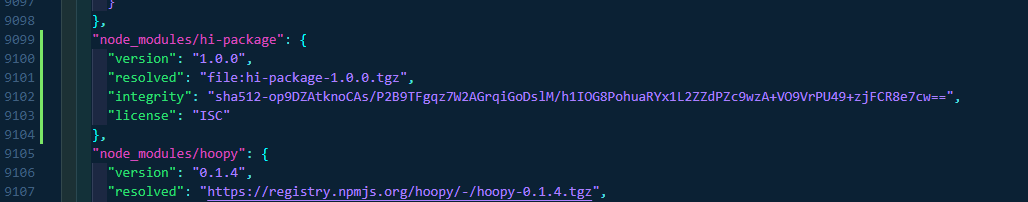 lock.json의 integrity 항목과 npm pack할때 나왔던 integrity 항목의 값을 비교해보면 똑같은 값임을 알 수 있다.