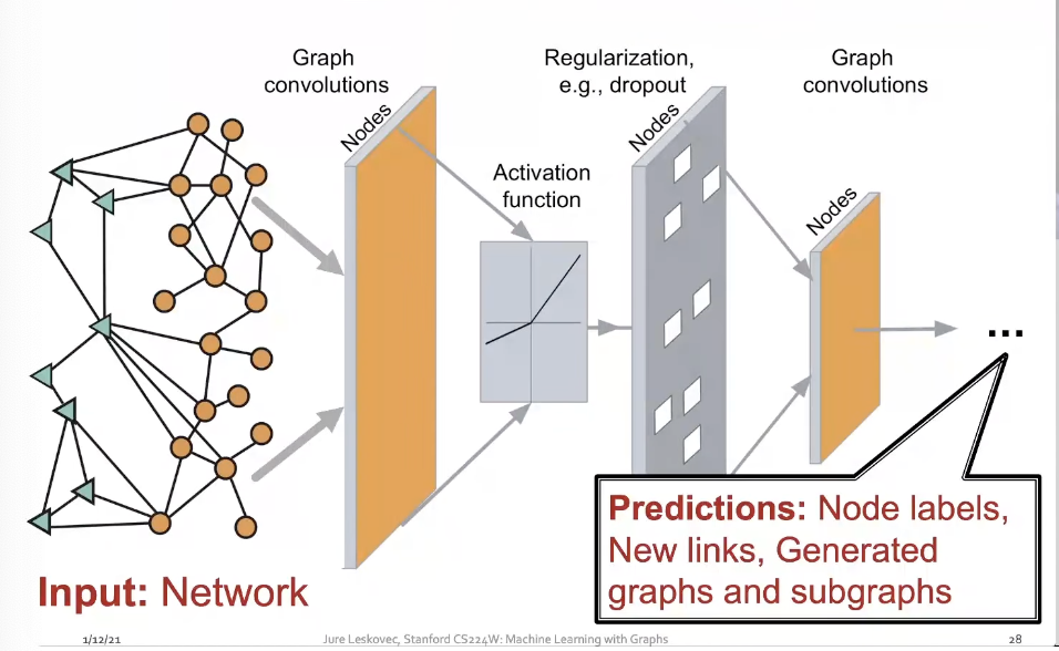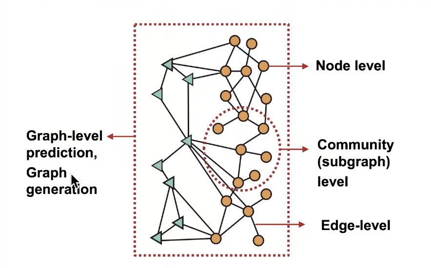 - 많은 type의 graph가 존재한다 ; event graphs, computer networks, disease pathways, social networks, economic networks, communication networks, knowledge graphs, regulatory networks, scene graphs, code graphs, molecules, 3D shapes