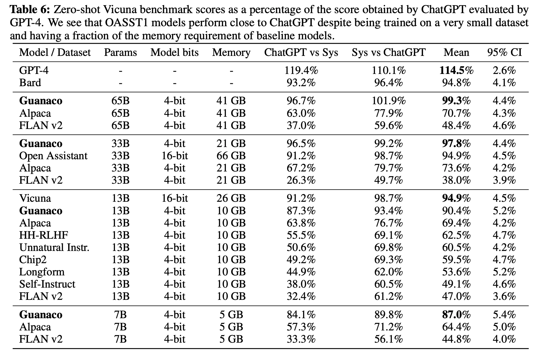 5.3 Guanaco: QLoRA trained on OASST1 is a State-of-the-art Chatbot